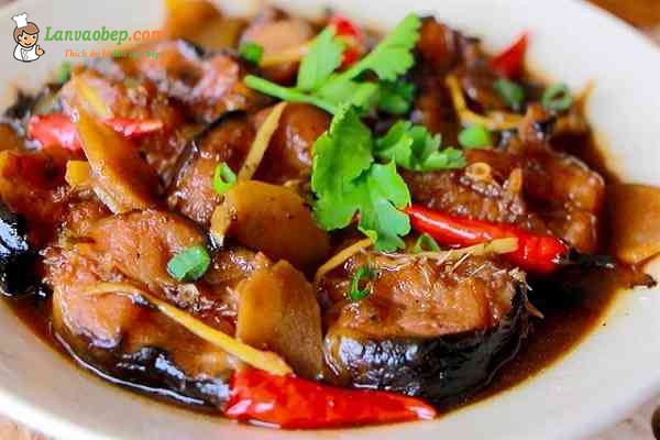 - Đổ thêm một chút nước lọc vào chảo, đậy nắp lại và kho ở lửa nhỏ trong khoảng 20-25 phút hoặc đến khi nước kho sánh lại và cá chín mềm.