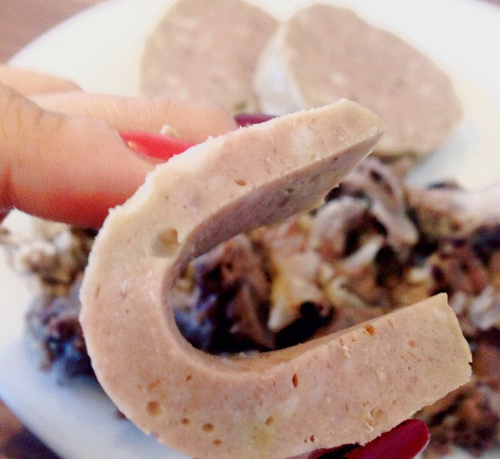 - Không để thịt bị nóng (hay nóng đúng hơn máy xay bị nóng, nhiệt truyền lên thịt). Thịt bị nóng thì giò sẽ bở ngay, vì thế trong công thức cần nước lạnh, nước đá và cả khâu cho thịt vào tủ đá trước khi xay, xay ngắt quãng cho máy không bị nóng. Trong lúc làm mình cũng hay sờ máy xem máy có bị nóng ko, nếu bị nóng thì cho nghỉ ngay.