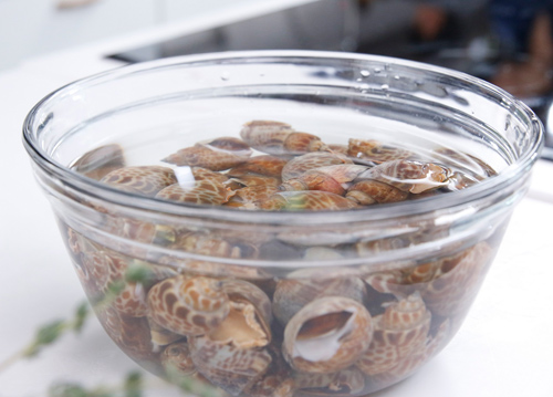 Rửa sạch ốc và ngâm trong nước muối 30 phút. Sau đó rửa lại lần nữa rồi để ráo.